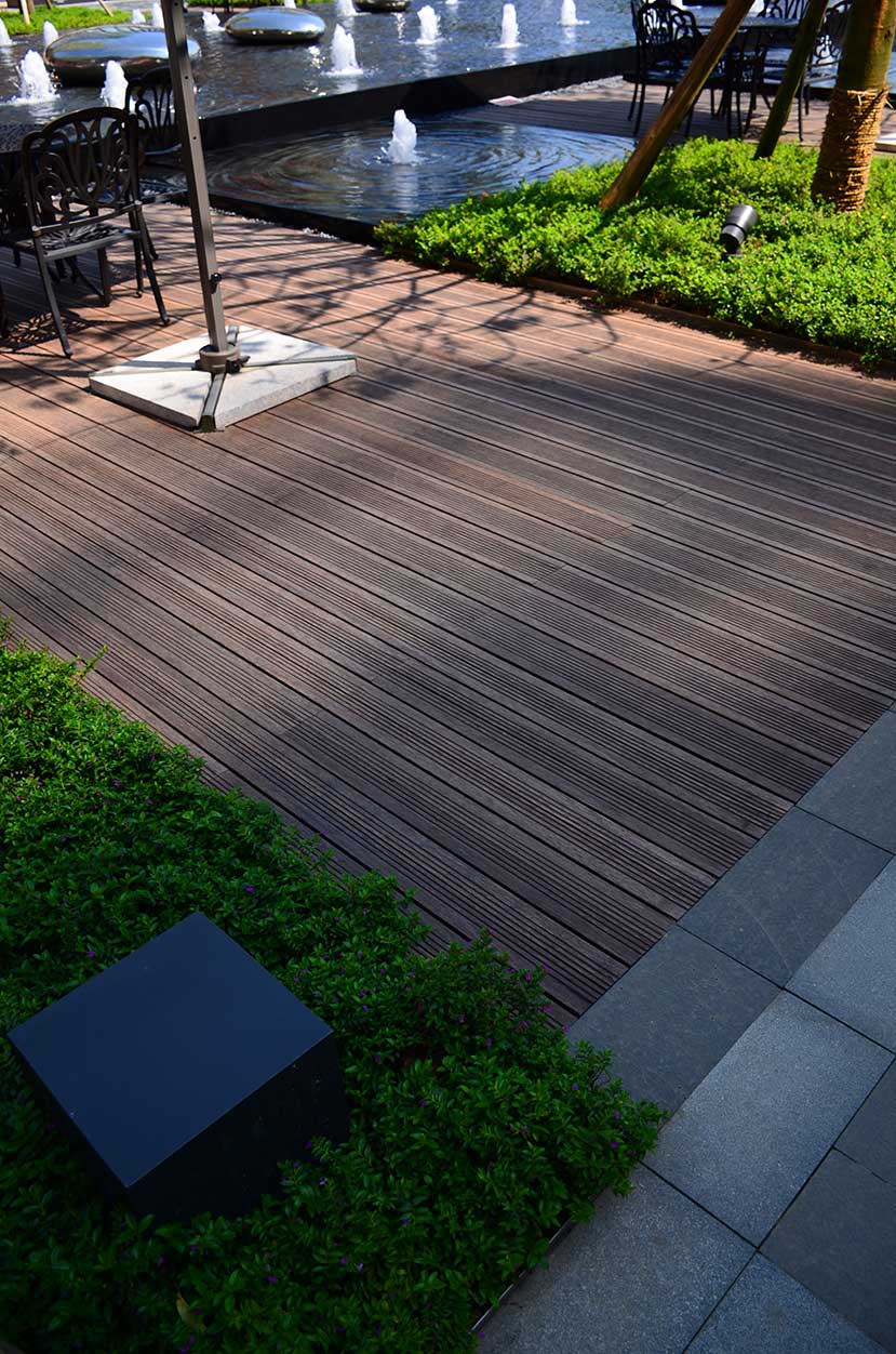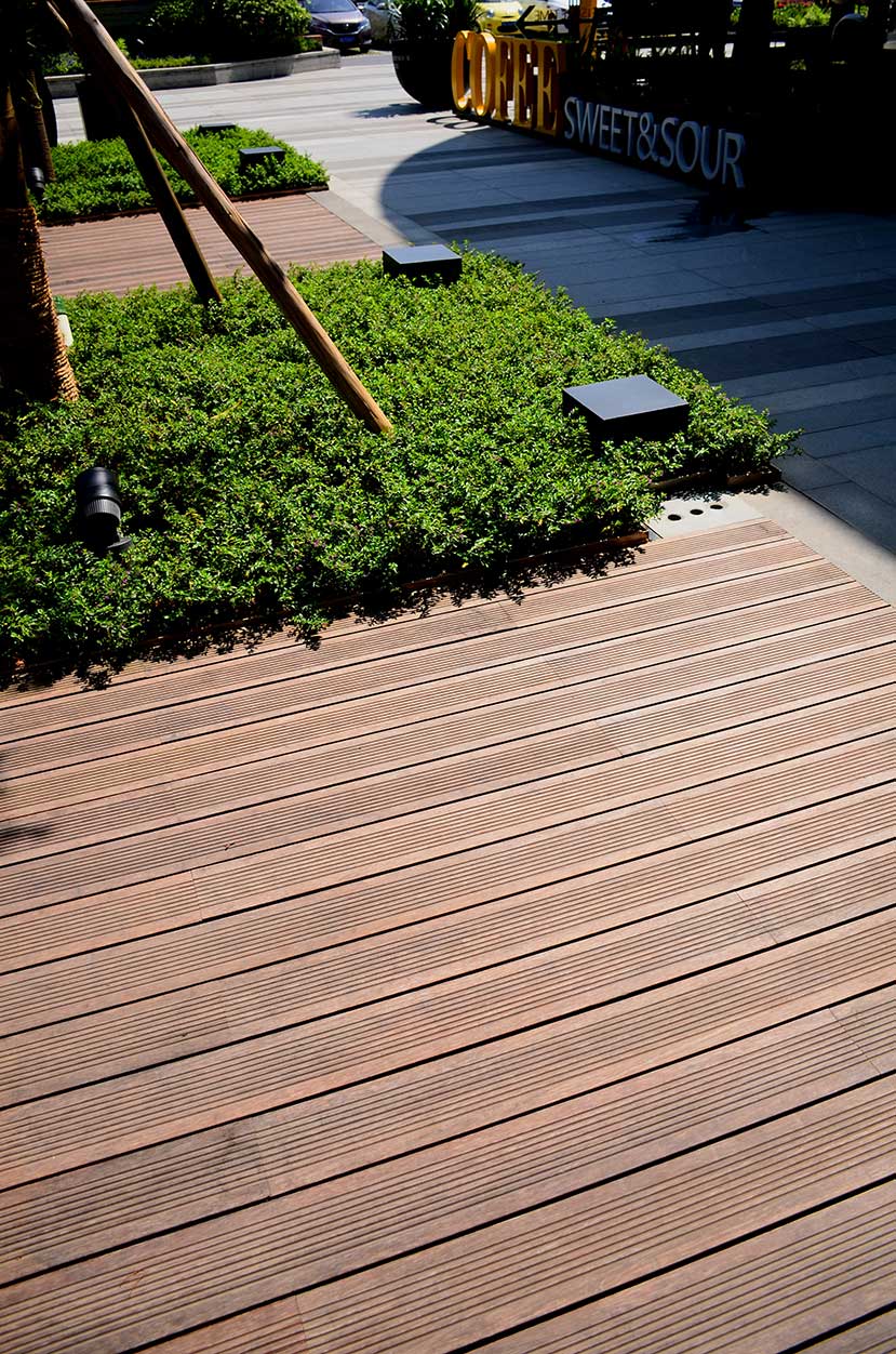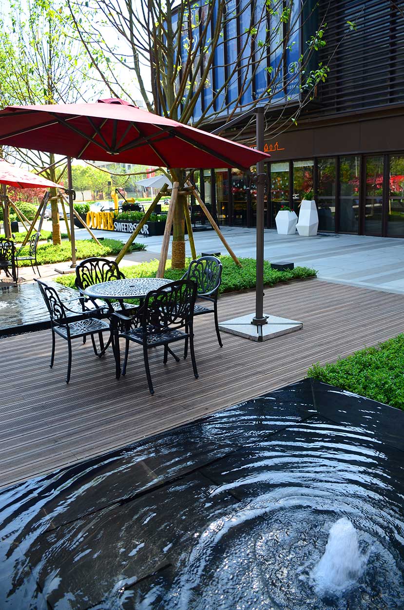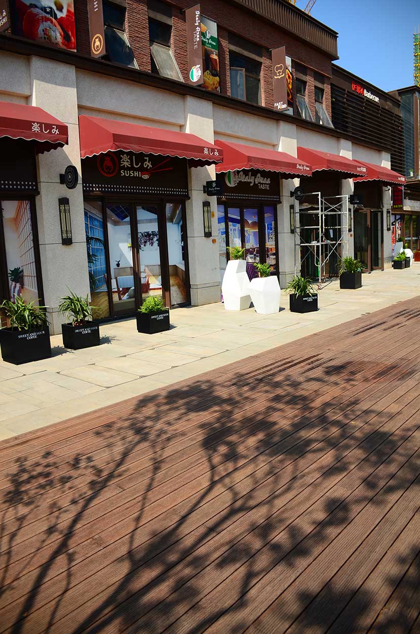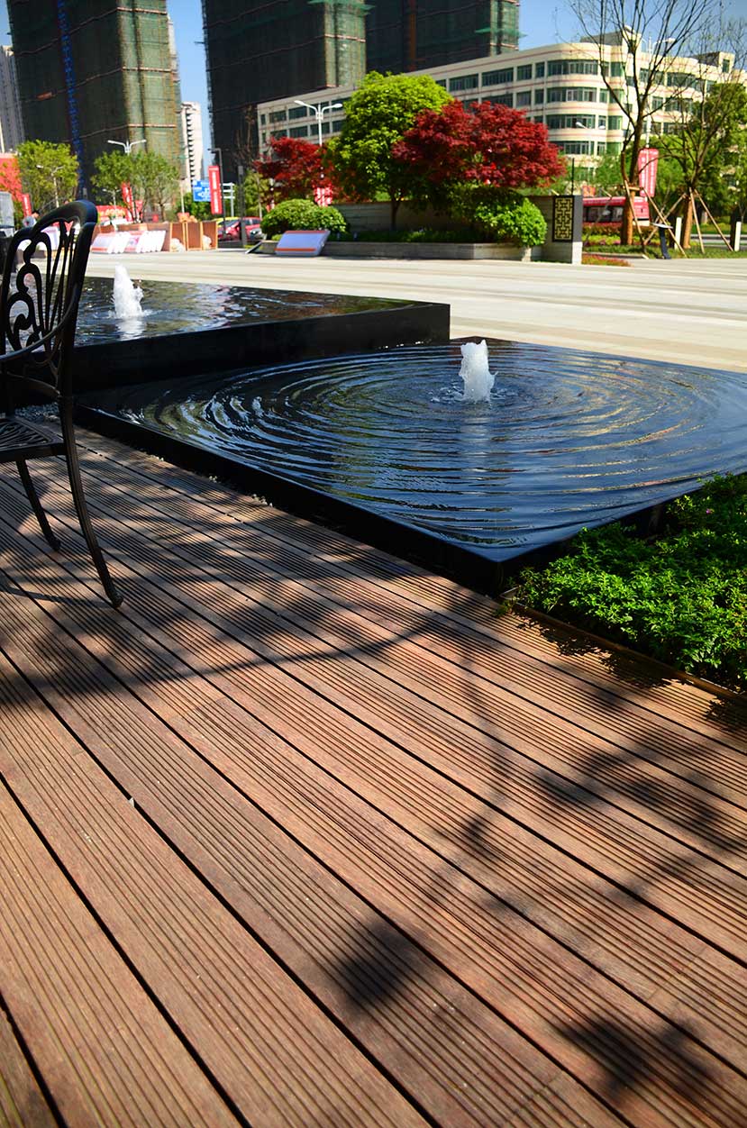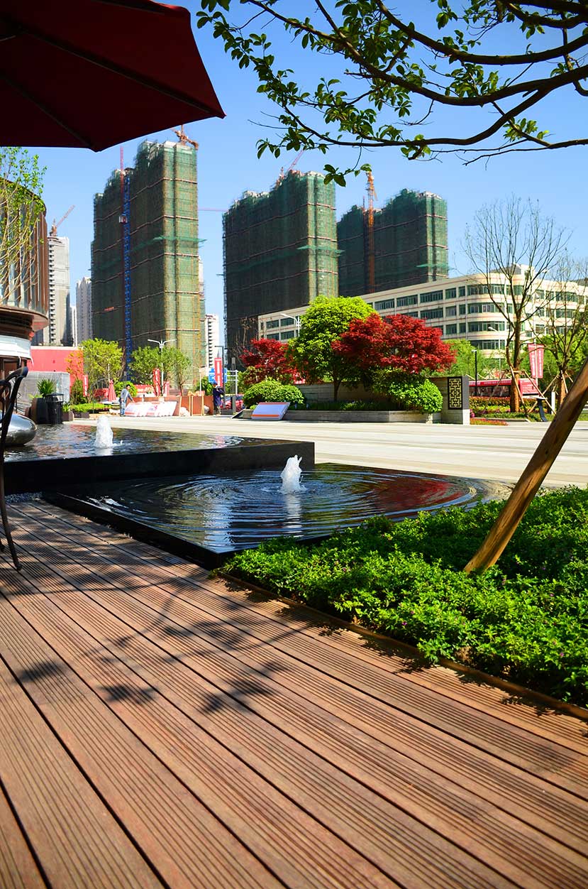 南昌萬科金域國際位于南昌經(jīng)開區(qū)雙港西大街,是萬科地產(chǎn)布局南昌的重點項目,該項目是南昌首屈一指的低密、人文、宜居的學院派主題風格社區(qū)。 南昌萬科金域國際項目的社區(qū)風情廣場使用桃花江戶外防腐竹地板結合原生石材作為地面鋪裝,強化人與環(huán)境的自然統(tǒng)一,靈動的流水景觀與學院派風格的建筑完美結合,漫步其中仿佛置身于歐洲某個寧靜的古老小鎮(zhèn)。