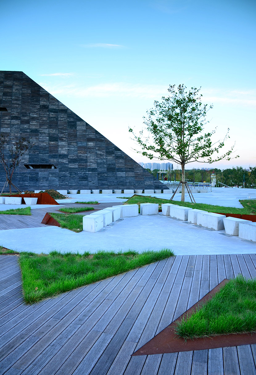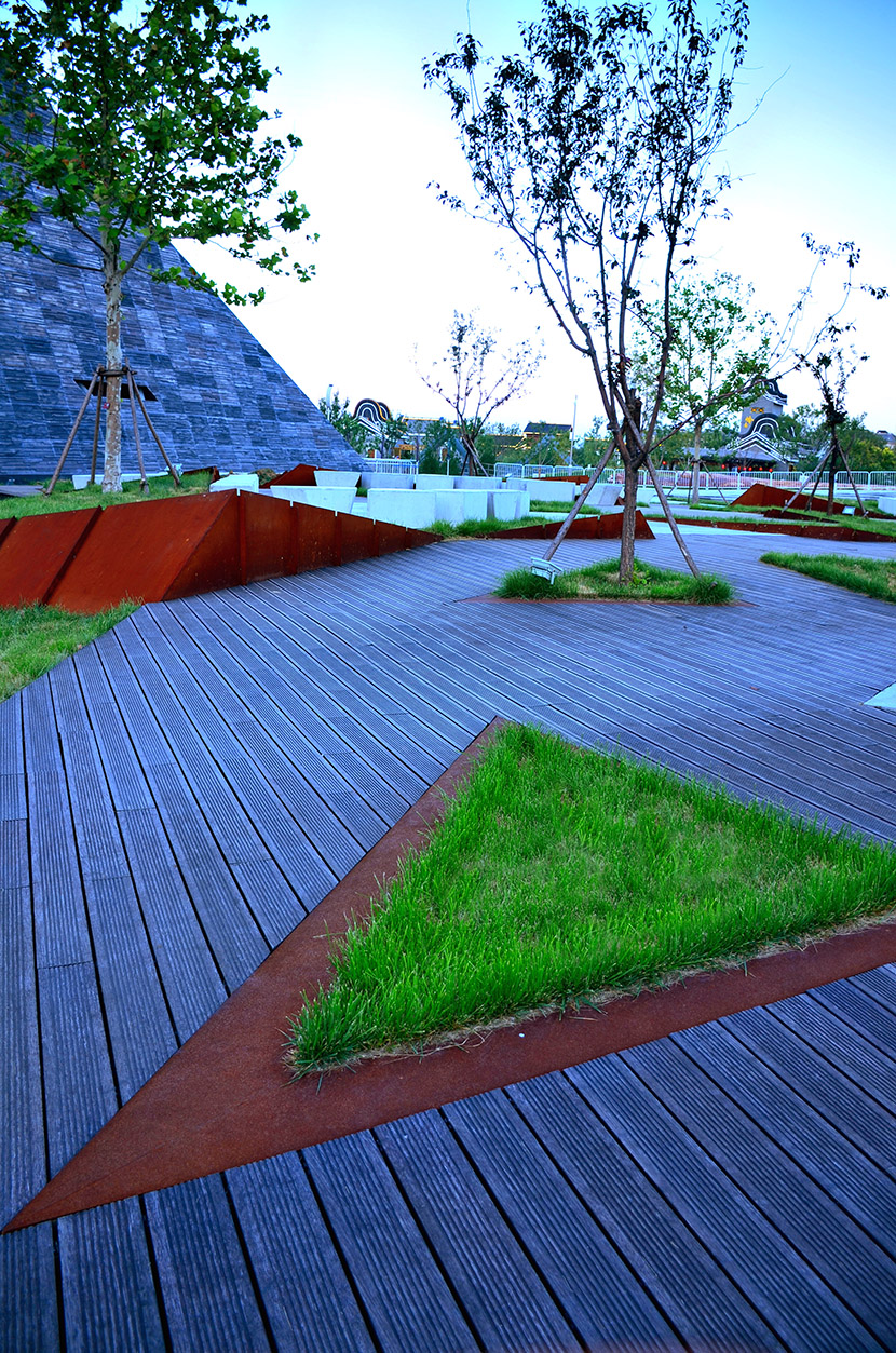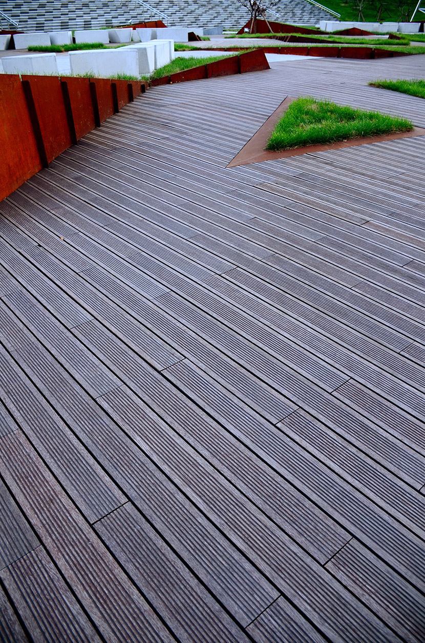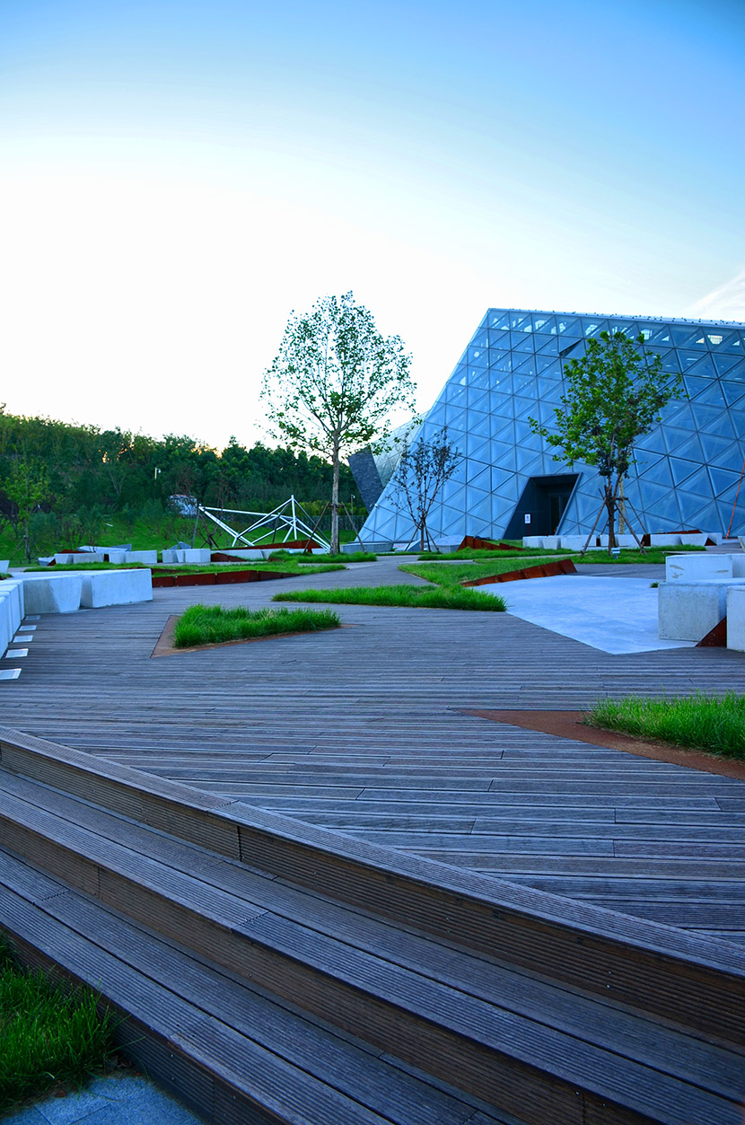 唐山熱帶植物館為2016年唐山世界園藝博覽會主展館,建筑面積1.3萬平方米,其中室內(nèi)展出面積是7000平方米,地上3層,高23m,總投資4.5億元。場館運用桃花江戶外防腐竹地板,搭配清水混凝土與腐蝕鋼板等工業(yè)風(fēng)材質(zhì),通過簡潔、犀利的幾何線條切割手法有力的詮釋出唐山以煤為根,以鐵為命,堅韌的意志與豐富的地貌的設(shè)計理念,整個建筑極具視覺沖擊力。