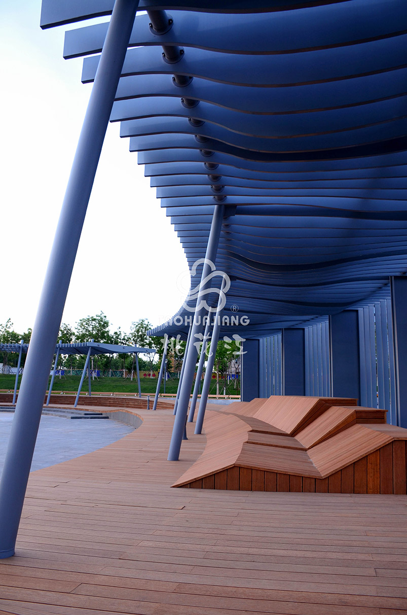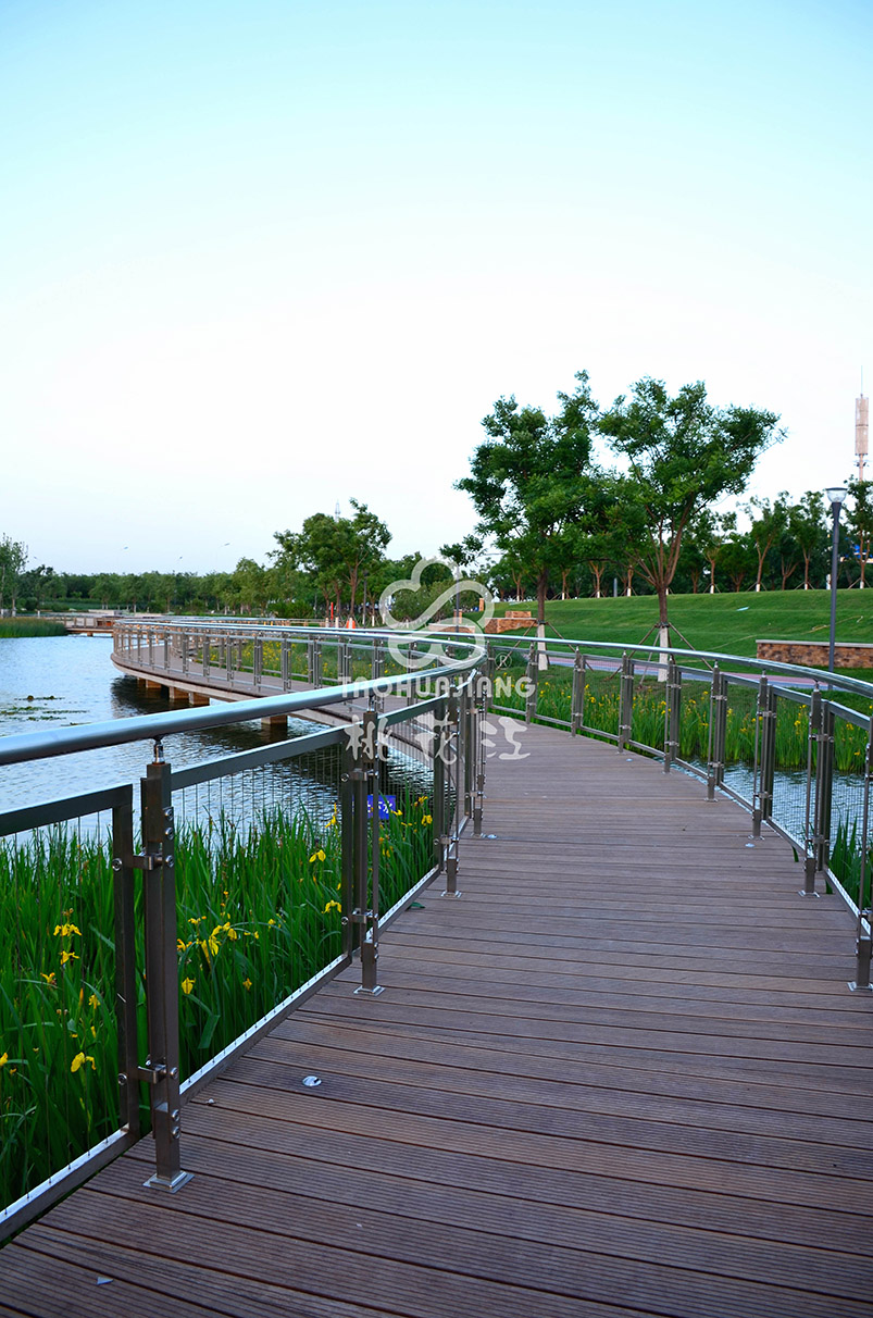 甘露溪公園位于天津?yàn)I海旅游區(qū)生態(tài)城中部片區(qū),總長2.2千米,平均寬度200米,總面積約347560平米。公園的游覽步道、景觀平臺及部分運(yùn)動(dòng)場地運(yùn)用桃花江戶外防腐竹地板。公園的規(guī)劃設(shè)計(jì)是以生態(tài)自然為基底,休閑運(yùn)動(dòng)為核心,建立一體化景觀綠道和生態(tài)走廊,形成體現(xiàn)濱海旅游區(qū)國際化特色的濱水綠廊;無縫結(jié)合規(guī)劃城市肌理和兩岸景觀界面,打造生活、時(shí)尚、多樣化的濱水目的地,為周邊地塊提供運(yùn)動(dòng)、休閑的后花園。甘露溪公園的景觀設(shè)計(jì)獲得“艾景獎(jiǎng)”2015年度十佳景觀設(shè)計(jì)。