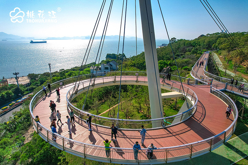 廈門山海健康步道,位于福建省廈門市,全長設(shè)計規(guī)劃達500公里,分成云海線、林海線、花海線和望海線等。健康步道的建設(shè)嚴(yán)格遵循“生態(tài)優(yōu)先、以人為本”的理念,依托廈門卓越的山、林、海、湖自然景觀資源,將生態(tài)發(fā)展和民生改善有機融合,形成了集生態(tài)改善、文化展示、休閑健身、觀景旅游功能于一體的“健康步道”系統(tǒng)。林海線上的棧道和沿途的竹木休閑座椅多由桃花江戶外防腐竹材打造,色澤飽滿,耐腐耐候,環(huán)保健康。漫步在空中,穿梭在林中,觀山望海,滿目皆景,移步異景,走累了還可以到沿途的座椅上歇一歇,真是一種安全、舒適的觀景、休閑、健身的豐富體驗!