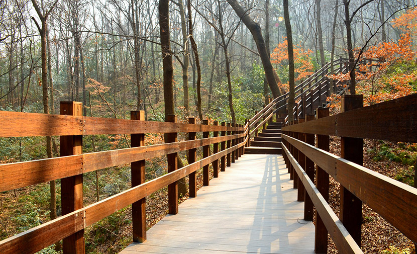 湖北襄陽綠道項目位于襄陽古城外的峴山森林公園腹地,是襄陽市政府打造的1000公里綠道網(wǎng)的示范區(qū),是襄陽市民戶外休閑、健身的首選地。 峴山綠道全長6.8公里,依虎頭山山勢而建,曲折蜿蜒,落差三百多米。該項目全部運用桃花江竹材科技的戶外防腐竹地板和重竹欄桿。襄陽綠道建設不砍一草一木,強調(diào)與自然的完美和諧,與周邊環(huán)境融為一體,漫步其中盡享自然之美。