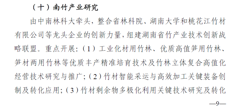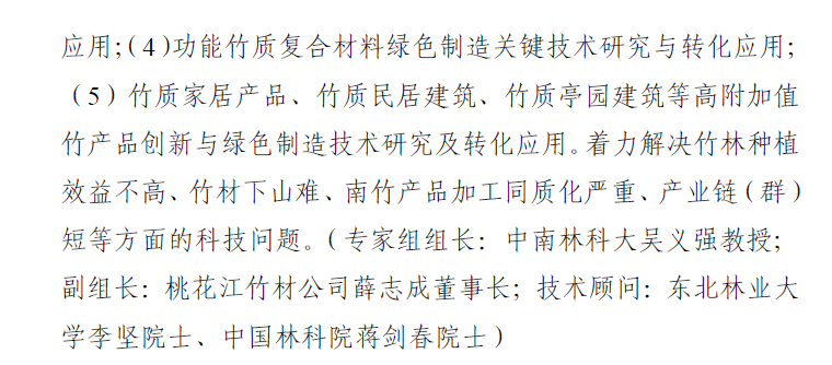 在南竹產(chǎn)業(yè)研究方面,湖南桃花江竹材科技股份有限公司作為南竹行業(yè)的龍頭企業(yè),將和中南林科大,省林科院和湖南大學等單位組建成湖南省竹產(chǎn)業(yè)技術(shù)創(chuàng)新戰(zhàn)略聯(lián)盟開展研究工作。桃花江竹材有限公司的董事長薛志成做為專家組副組長和中南林科大、東北林業(yè)大學、中國林科院的教授和院士們一起參與項目的研究,為湖南省的千億產(chǎn)業(yè)項目貢獻力量。