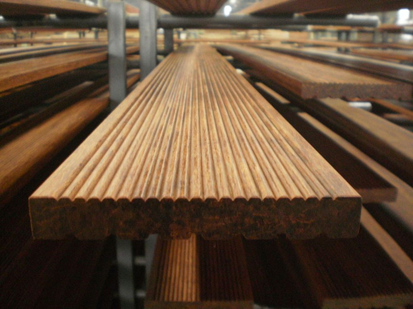 戶外高耐竹木材料是將竹子順勢(shì)切成較細(xì)的長纖維,經(jīng)過脫水,高溫高壓而成,具有耐磨、耐腐、穩(wěn)定性高的新型高科技戶外用材。同等大小竹材的抗壓強(qiáng)度是一般木材的2倍,抗拉強(qiáng)度是一般木材的8-10倍,適用于多種戶外環(huán)境的地面、墻面裝飾,具有高強(qiáng)的耐磨型和耐腐蝕性,還有抗白蟻、防火阻燃、高硬度,是極佳的戶外材料。優(yōu)良的尺寸,高穩(wěn)定性、高抗壓強(qiáng)度、高密度,使其能輕松應(yīng)對(duì)惡劣的戶外濕熱、干冷等特殊環(huán)境。由于此類材料起步較晚,因此成本偏高,在制作過程中,不會(huì)添加任何著色劑,強(qiáng)調(diào)竹子天然的環(huán)保性,因而其顏色單一,一般以棕色,咖啡色為主。