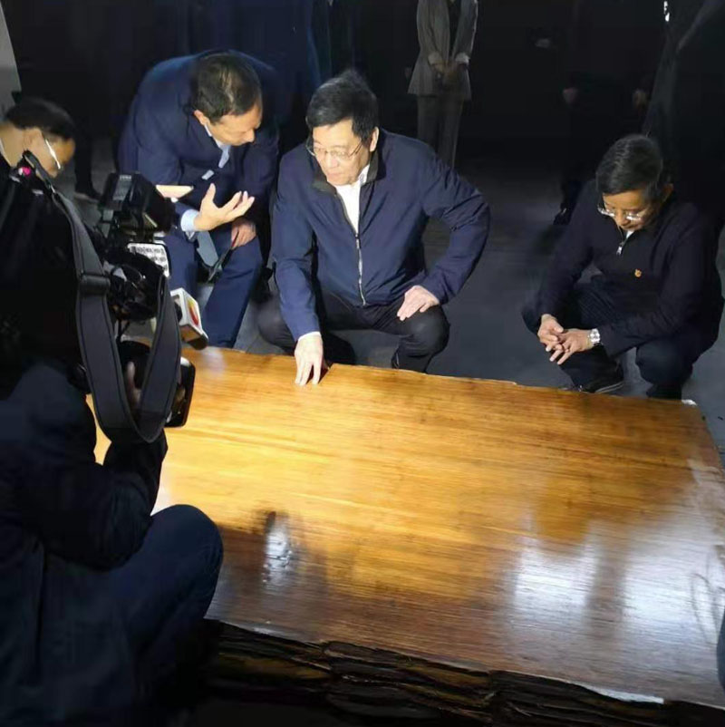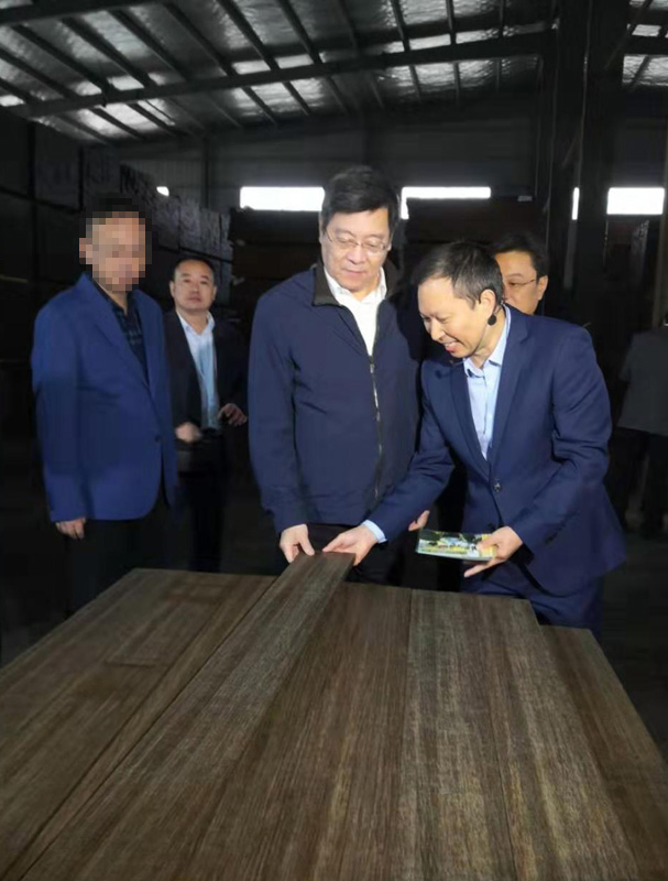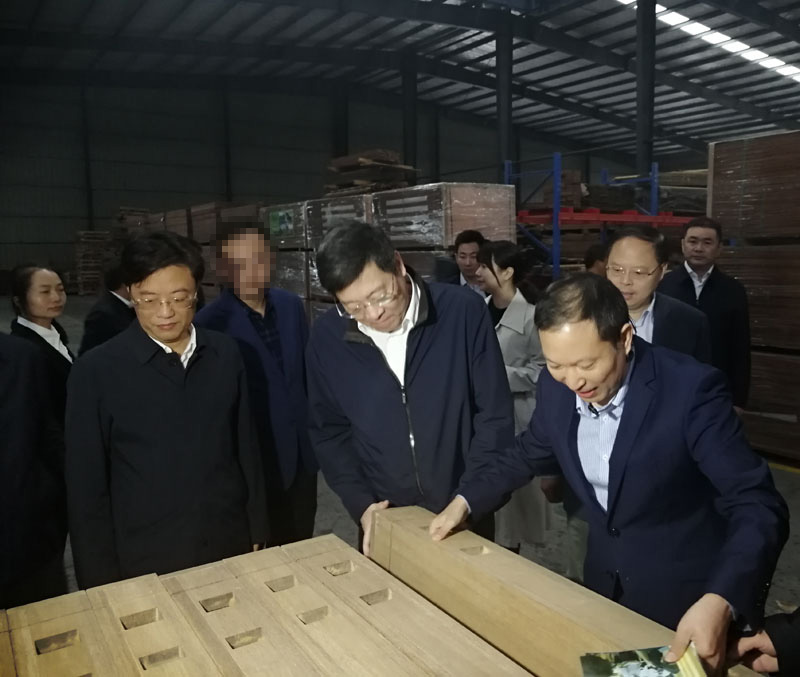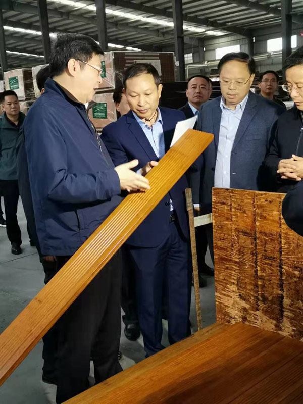 2019年10月15日,湖南省省委書記、省人大常委會(huì)主任杜家毫一行蒞臨我司考察調(diào)研,這也是他任職湖南省后第二次造訪桃花江竹材。湖南省委常委、湖南省委秘書長(zhǎng)張劍飛,益陽市市委書記瞿海、益陽市市長(zhǎng)張值恒等相關(guān)部門領(lǐng)導(dǎo)陪同調(diào)研。在公司董事長(zhǎng)薛志成的陪同下,杜書記一行深入我司戶外竹材生產(chǎn)車間一線調(diào)研,對(duì)我司生產(chǎn)經(jīng)營(yíng)、人才培養(yǎng)、科技創(chuàng)新和新產(chǎn)品開發(fā)等方面進(jìn)行了調(diào)研。杜書記仔細(xì)端詳公司產(chǎn)品,詳細(xì)詢問產(chǎn)品的生產(chǎn)流程,應(yīng)用領(lǐng)域和銷售情況,他對(duì)公司擁有戶外防腐竹材、竹地板、竹墻板等10余項(xiàng)國(guó)家授權(quán)發(fā)明專利的研發(fā)能力表示贊賞,他說 :"我們需要的就是像桃花江竹材這樣的企業(yè) ,有較強(qiáng)的自主研發(fā)能力,生產(chǎn)的戶外竹材產(chǎn)品,環(huán)保又可持續(xù)發(fā)展,市場(chǎng)前景巨大,發(fā)展竹產(chǎn)業(yè)又能帶動(dòng)周邊竹農(nóng)致富,政府表示大力支持,前不久出臺(tái)的那個(gè)湖南農(nóng)業(yè)優(yōu)勢(shì)特色千億產(chǎn)業(yè)行動(dòng)方案就部署了對(duì)楠竹產(chǎn)業(yè)的發(fā)展規(guī)劃,希望桃花江竹材作為竹產(chǎn)業(yè)的龍頭企業(yè),能充分發(fā)揮引領(lǐng)帶頭作用,提升竹產(chǎn)業(yè)的科技創(chuàng)新能力,為把竹產(chǎn)業(yè)做大做強(qiáng)貢獻(xiàn)更大的力量。"